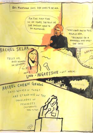 Gerrol’s comments were an interesting parallel to those of the 101-year-old Bel Kaufman, longtime NYC school teacher and fiction writer. In addition to talking about her experiences in the classroom–"It’s about love, it’s about facets of love”—she also told the crowd how much she enjoyed being old. “For the first time, one has the opportunity to do what one wants instead of what one has to do.”