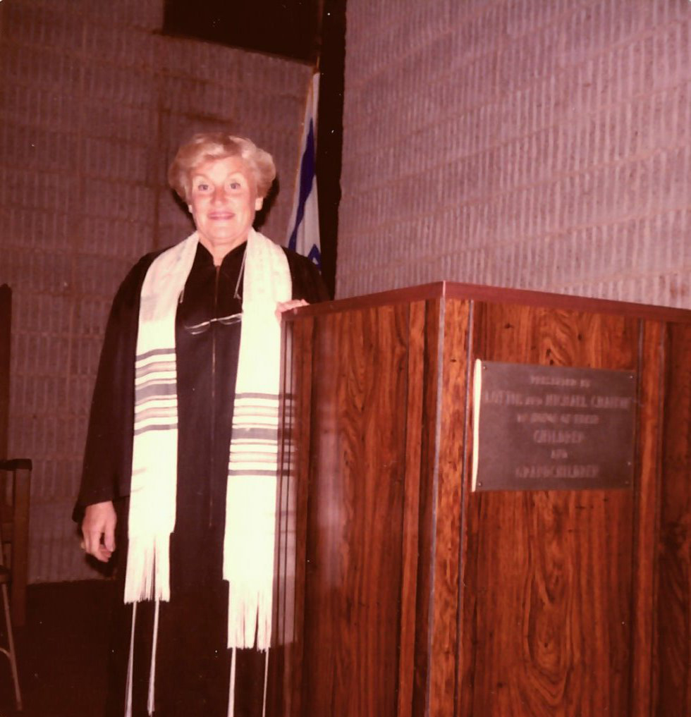With her trained voice and performance skills, Engel quickly became a leading singer in the choir of Nassau Community Temple. In addition to her musical skills, she was proficient in Hebrew and very religious; she cherished memories of attending Friday night services at the synagogue in Burghaslach as a small child with her father and her grandfather. She learned the music for Shabbat services as well as for the High Holiday and festival services, occasionally substituting for the regular cantor when he was unavailable. In 1975, she led the service during the Sisterhood Shabbat. Her substitute cantorial work was so good that, in the early 1970s, some members of the congregation urged her to apply for the job permanently.
