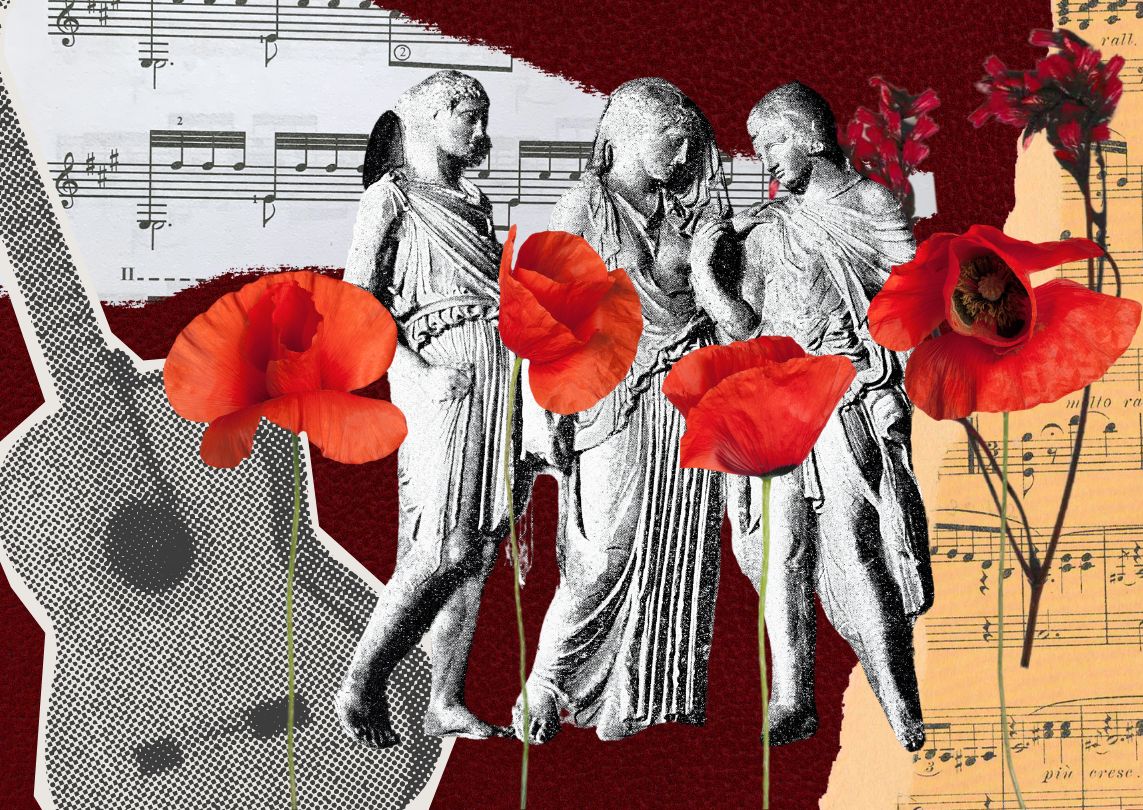Collage with images of Orpheus, Eurydice & Hermes Collage with sculptures of Orpheus, Eurydice & Hermes by Judy Goldstein. Print Full Image Rights JWA use only on jwa.org Related contentBlog: See the Way the World Could Be: The Feminism of Hadestown