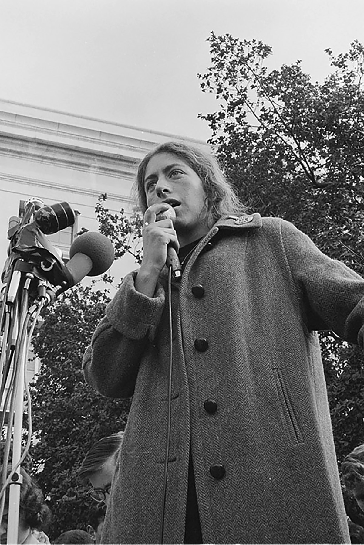 Feminist academic and activist Bettina Aptheker, speaking on the steps of Sprout Hall, University of California-Berkeley, during the Free Speech Movement, November 1964. Courtesy of Bettina Aptheker.