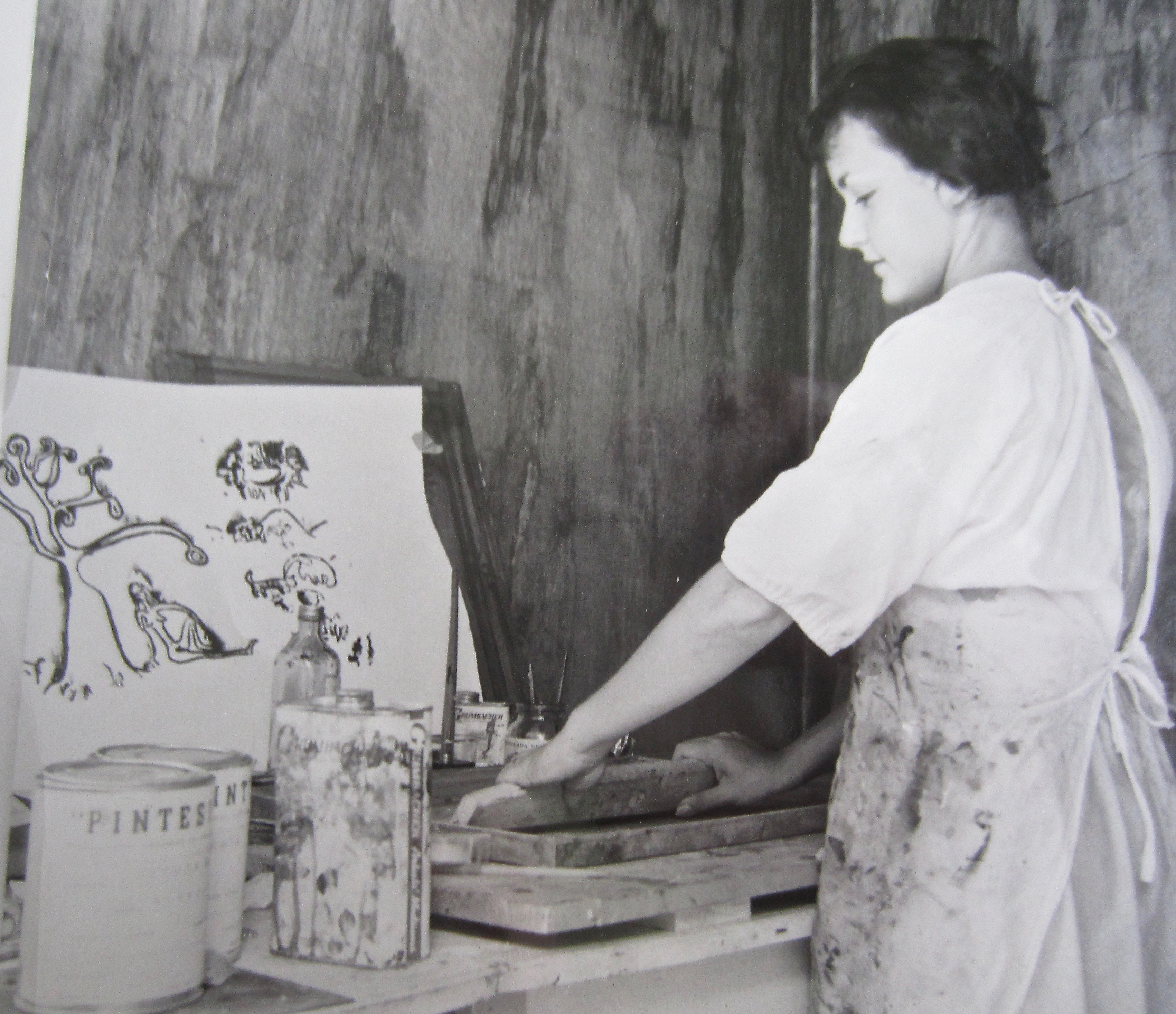 Artist/author Mae Rockland Tupa printmaking, c. 1960s. Courtesy of Mae Rockland Tupa and family.