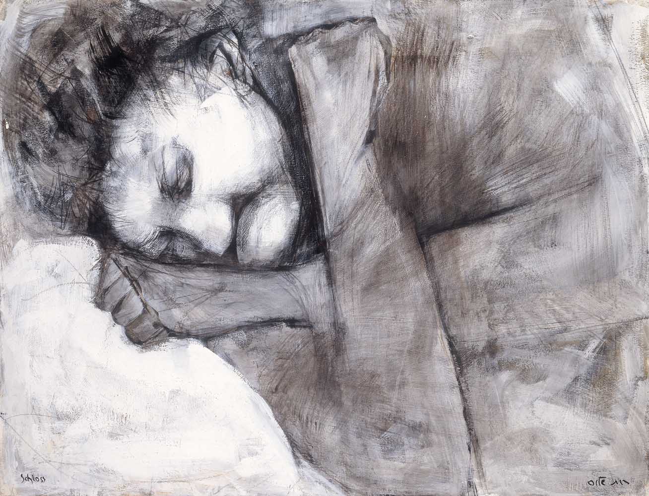 Israeli artist Ruth Schloss’s Woman Laying Down, 1994, acrylic on paper, 124x95 cm. Courtesy of Nurit Cohen Evron.