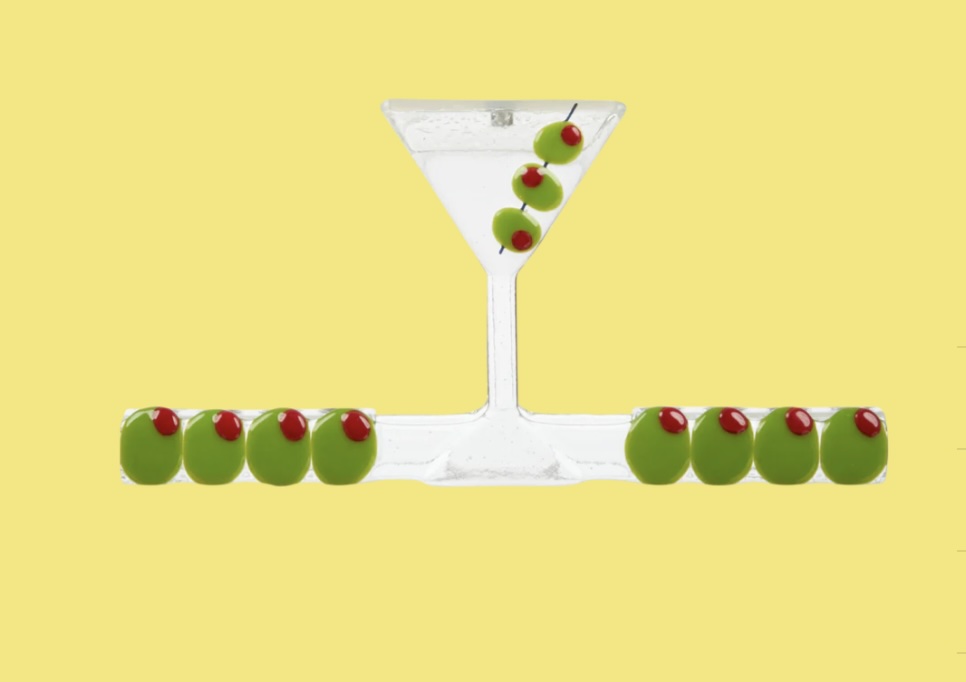 Susan Alexandra Martini Menorah Dirty Martini Menorah via susanalexandra.com. Print Full Image Rights JWA use only on jwa.org Related contentBlog: The Judaica of My Dreams, Just Out of Reach